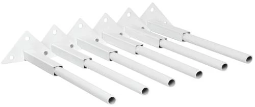 These 4 in legs reduce the overall height of the Fast Fit® Rolling Bench Tray Stand 4 ft x 8 ft (#706113) from 27.25 in to 13.125 in. Screw pack included.